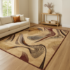 Bold, sweeping wave patterns in rich crimson and beige create a dynamic focal point, perfect for contemporary interiors.