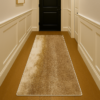 An elegant runner rug featuring a natural blend of beige and golden tones, adding warmth and texture to any hallway or entryway.