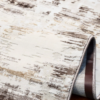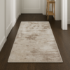 A rustic, textured rug with abstract earthy tones of beige, brown, and cream, creating a weathered, organic look.