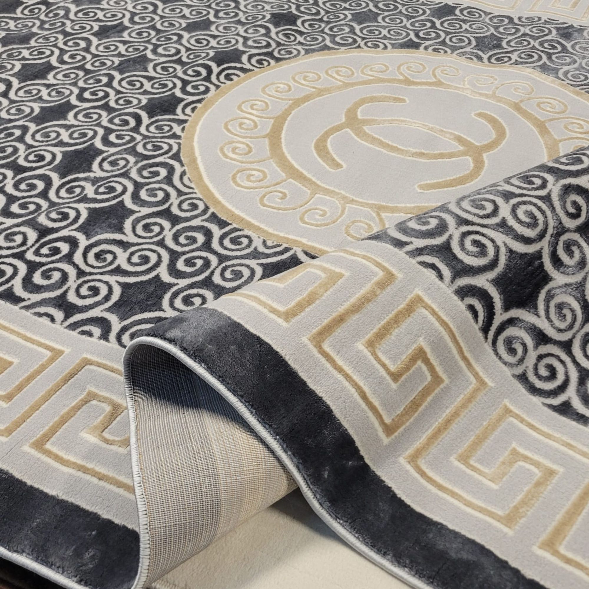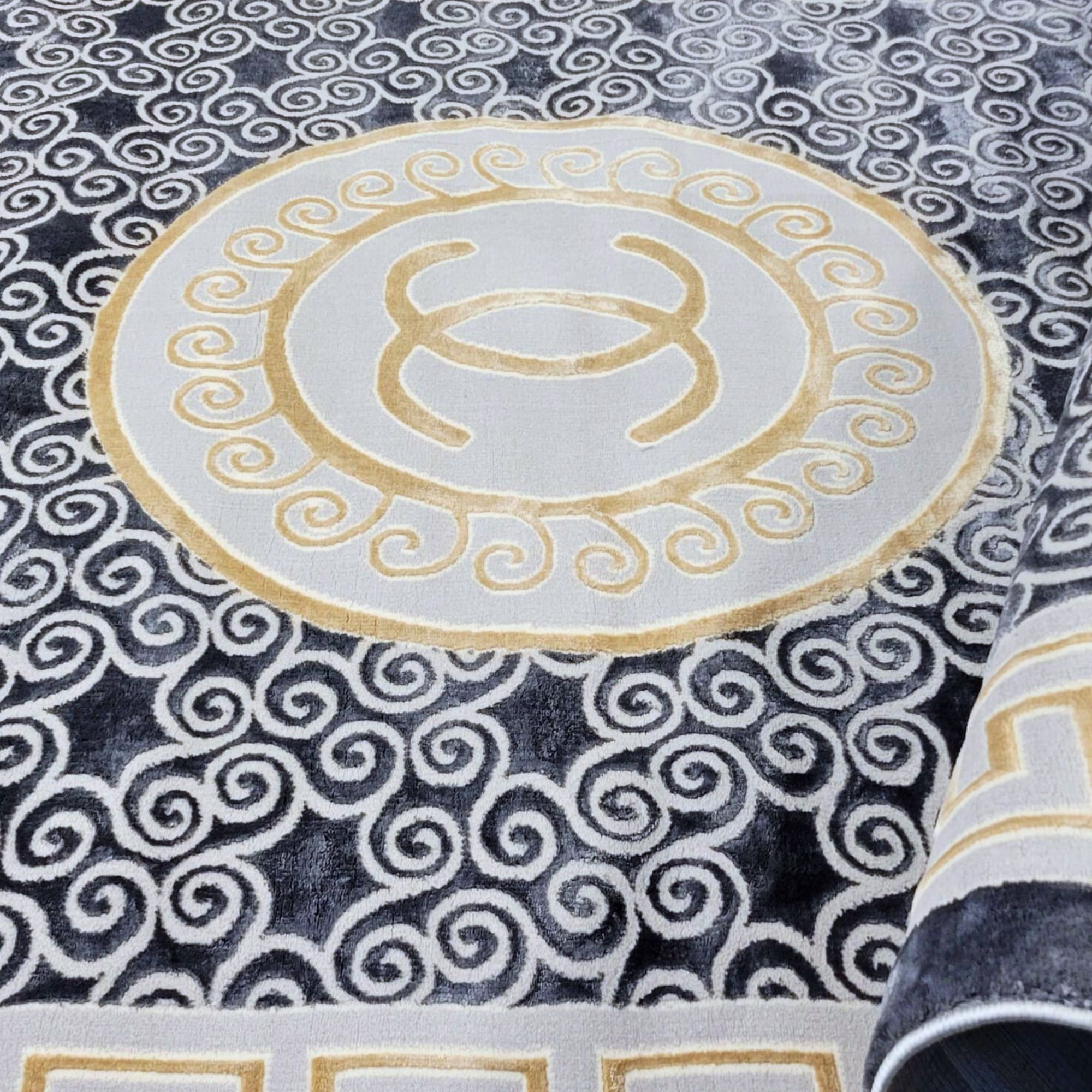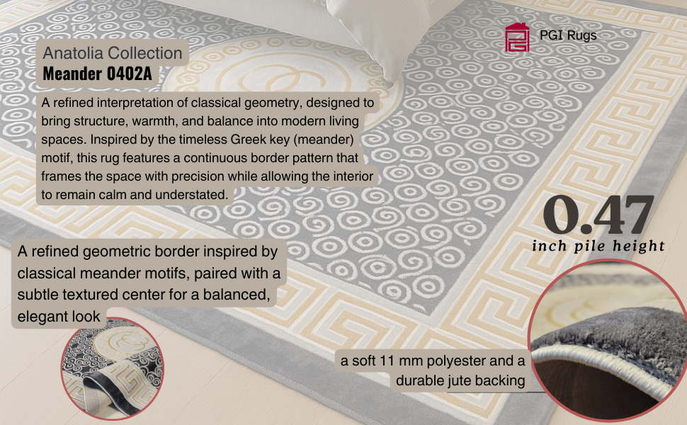 Meander Navy Gray PGI Rug 9x12 ft