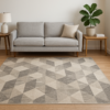 A geometric illusion in shades of gray, this rug adds depth and modern sophistication to any room.