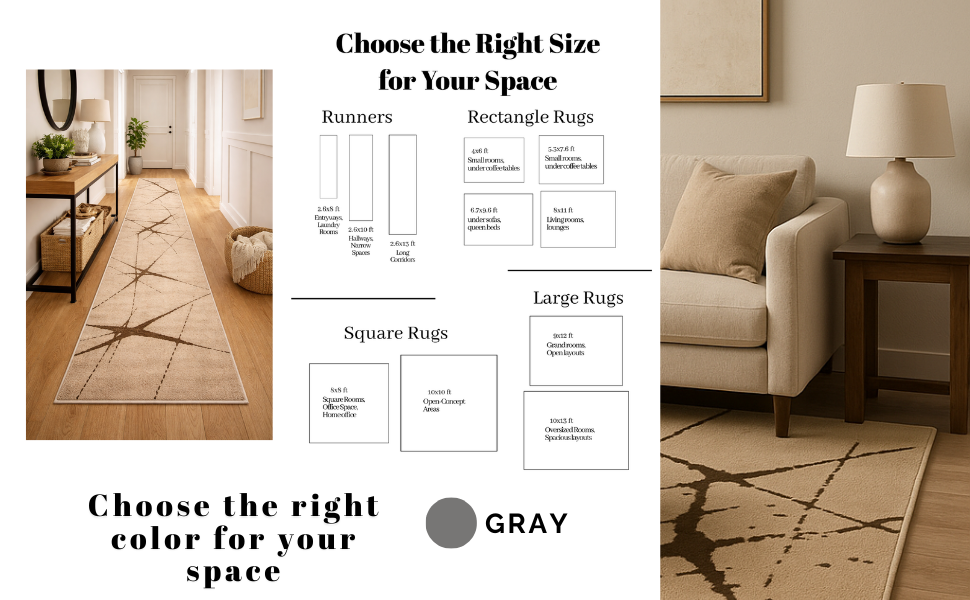 Ideal for large living rooms, open-concept spaces, formal seating areas, and expansive bedrooms where a modern abstract rug can anchor the room without visual clutter.
