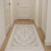 Elegant gray and white rug featuring a classic medallion pattern, adding a touch of sophistication to any space. Durable and easy to maintain