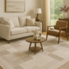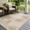 Featuring a modern geometric pattern in a versatile neutral palette, it’s the perfect foundation for patios, balconies, dining spaces, or open-concept living rooms. The low-profile design allows doors to pass easily over the rug and makes maintenance simple—just vacuum or hose clean.